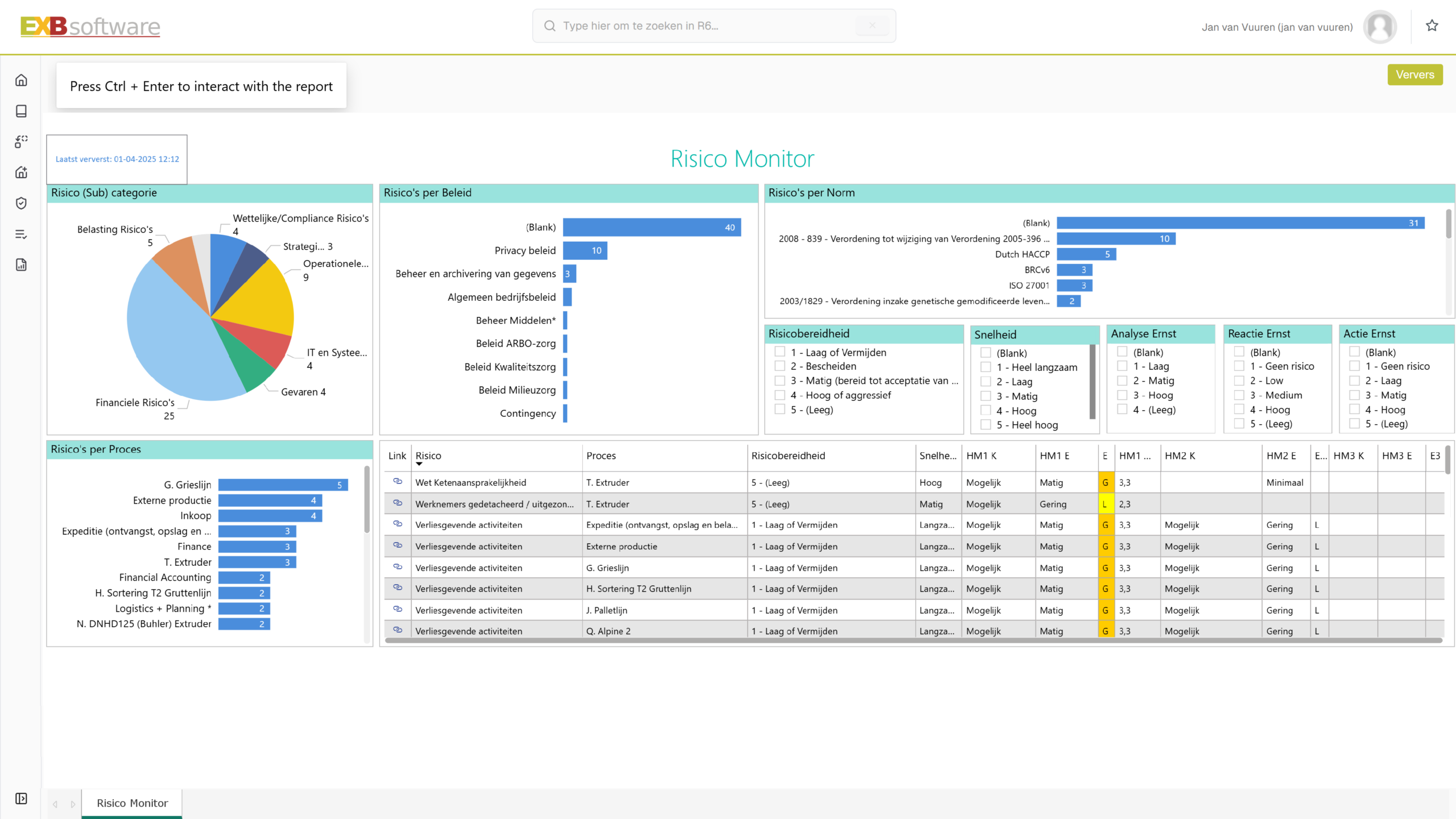 Risicorapportages worden vaak handmatig samengesteld en zijn momentopnames. Dit maakt het lastig om trends te herkennen en management tijdig te informeren.